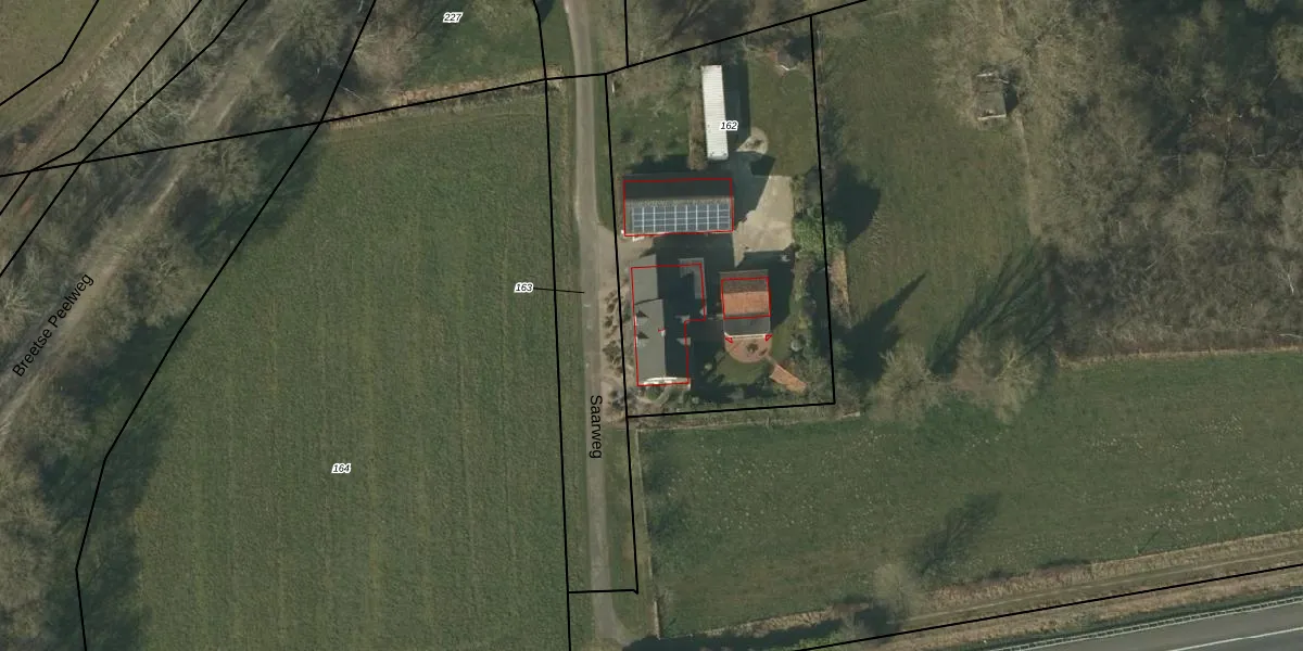 Saarweg 1 is gelegen op kadastraal perceel MBE00X162. Deze kadastrale aanduiding is uniek en wordt gebruikt door het Kadaster om eigendomsrechten en andere zakelijke rechten vast te leggen. Het perceel maakt onderdeel uit van de kadastrale gemeente Maasbree.