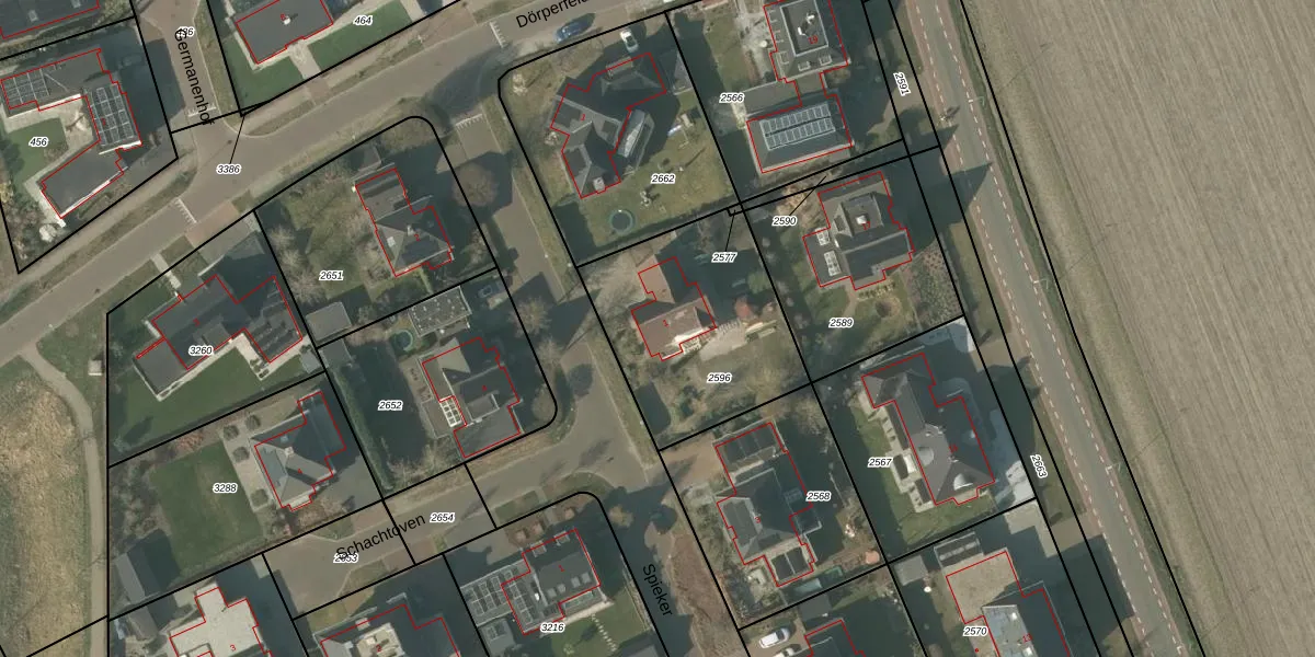 Het perceel waarop Spieker 1 staat heeft een oppervlakte van 782 m². Dit is een groot perceel. De perceeloppervlakte wordt geregistreerd door het Kadaster. Gedetailleerde informatie over de maten van dit perceel kunt u vinden in het rapport Kadastrale kaart met maatvoering van Spieker 1.