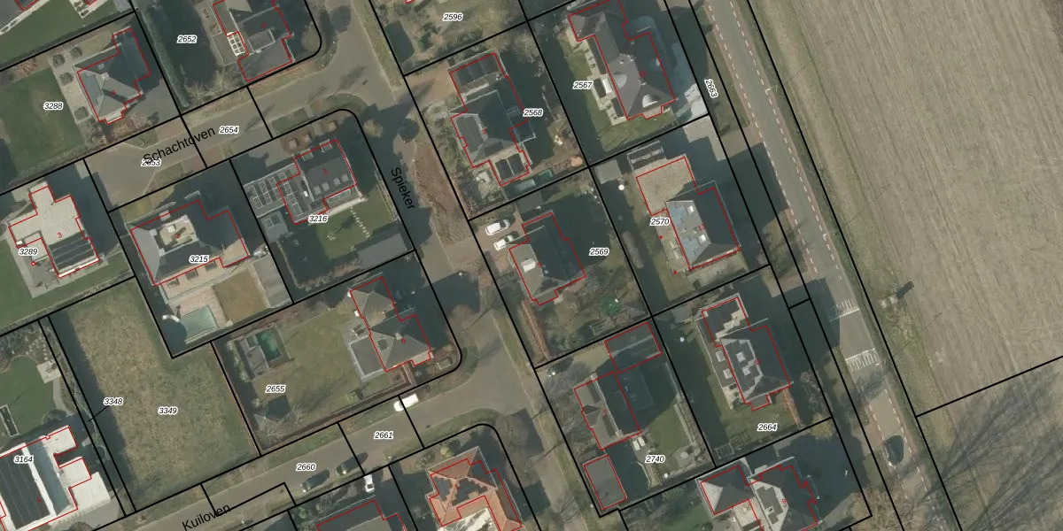 Spieker 5 is gelegen op kadastraal perceel MBE00K2569. Deze kadastrale aanduiding is uniek en wordt gebruikt door het Kadaster om eigendomsrechten en andere zakelijke rechten vast te leggen. Het perceel maakt onderdeel uit van de kadastrale gemeente Maasbree.