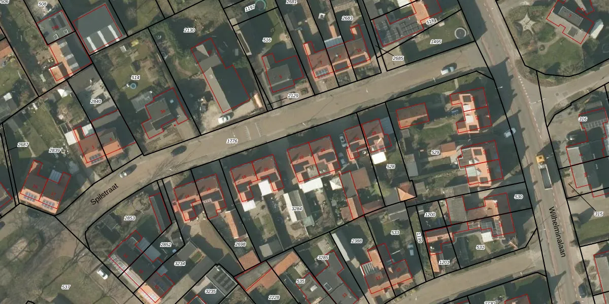 Het perceel waarop Spilstraat 22 staat heeft een oppervlakte van 1608 m². Dit is een zeer groot perceel. De perceeloppervlakte wordt geregistreerd door het Kadaster. Gedetailleerde informatie over de maten van dit perceel kunt u vinden in het rapport Kadastrale kaart met maatvoering van Spilstraat 22.