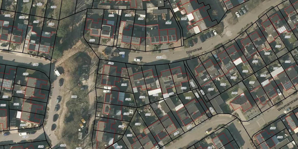 Gebruik de zoekbalk of klik op een perceel voor informatie over de adressen binnen dit perceel.