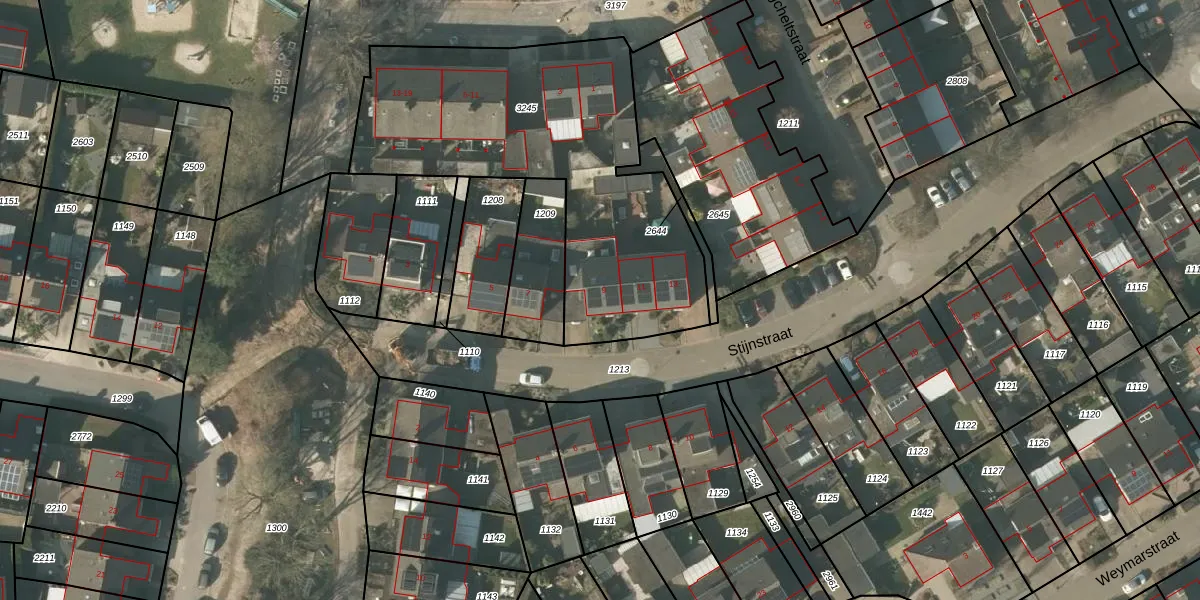Het perceel waarop Stijnstraat 9 staat heeft een oppervlakte van 1581 m². Dit is een zeer groot perceel. De perceeloppervlakte wordt geregistreerd door het Kadaster. Gedetailleerde informatie over de maten van dit perceel kunt u vinden in het rapport Kadastrale kaart met maatvoering van Stijnstraat 9.