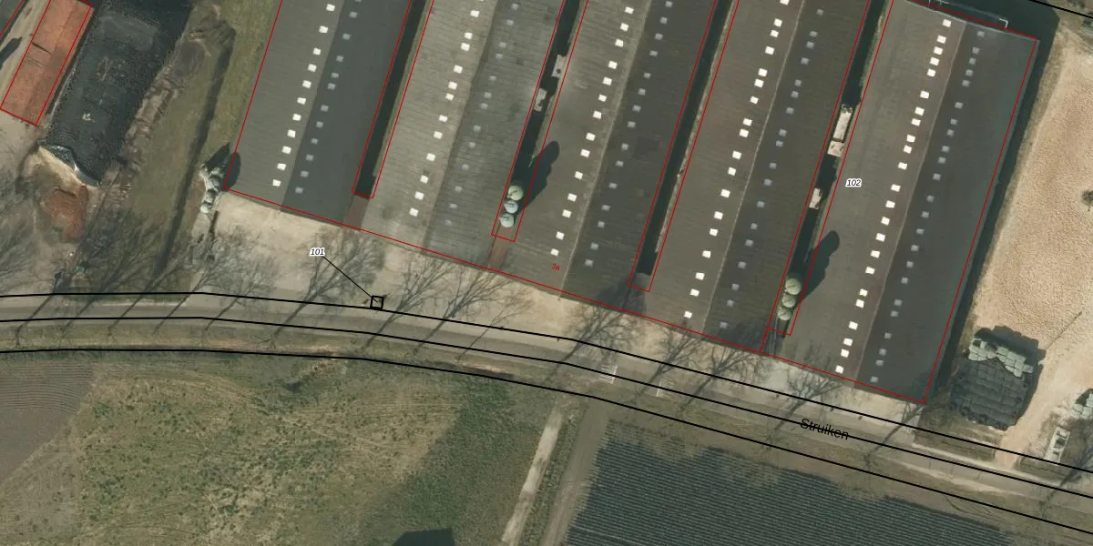 Het perceel waarop Struiken 3-a staat heeft een oppervlakte van 2,6 ha. Dit is een zeer groot perceel. De perceeloppervlakte wordt geregistreerd door het Kadaster. Gedetailleerde informatie over de maten van dit perceel kunt u vinden in het rapport Kadastrale kaart met maatvoering van Struiken 3-a.