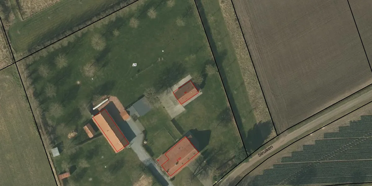 Het perceel waarop Struiken 6-C staat heeft een oppervlakte van 1,1 ha. Dit is een zeer groot perceel. De perceeloppervlakte wordt geregistreerd door het Kadaster. Gedetailleerde informatie over de maten van dit perceel kunt u vinden in het rapport Kadastrale kaart met maatvoering van Struiken 6-C.