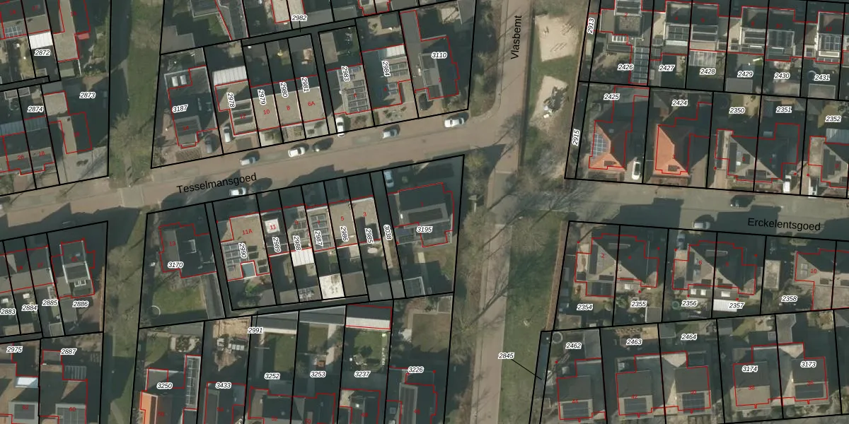 Het perceel waarop Tesselmansgoed 1 staat heeft een oppervlakte van 482 m². Dit is een groot perceel. De perceeloppervlakte wordt geregistreerd door het Kadaster. Gedetailleerde informatie over de maten van dit perceel kunt u vinden in het rapport Kadastrale kaart met maatvoering van Tesselmansgoed 1.
