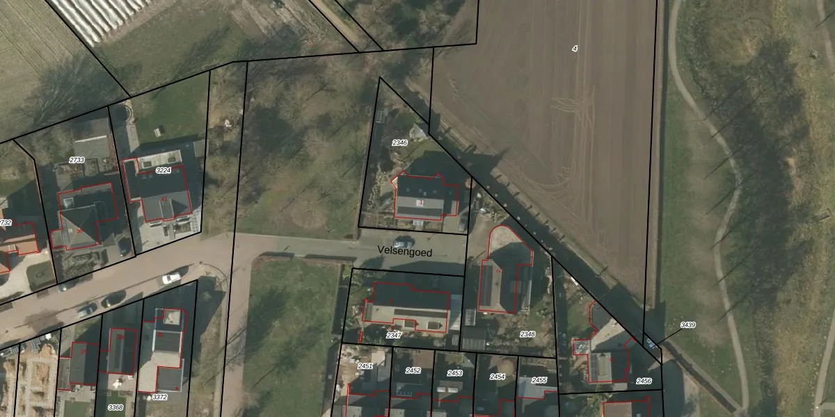 Velsengoed 1 is gelegen op kadastraal perceel MBE00K2346. Deze kadastrale aanduiding is uniek en wordt gebruikt door het Kadaster om eigendomsrechten en andere zakelijke rechten vast te leggen. Het perceel maakt onderdeel uit van de kadastrale gemeente Maasbree.
