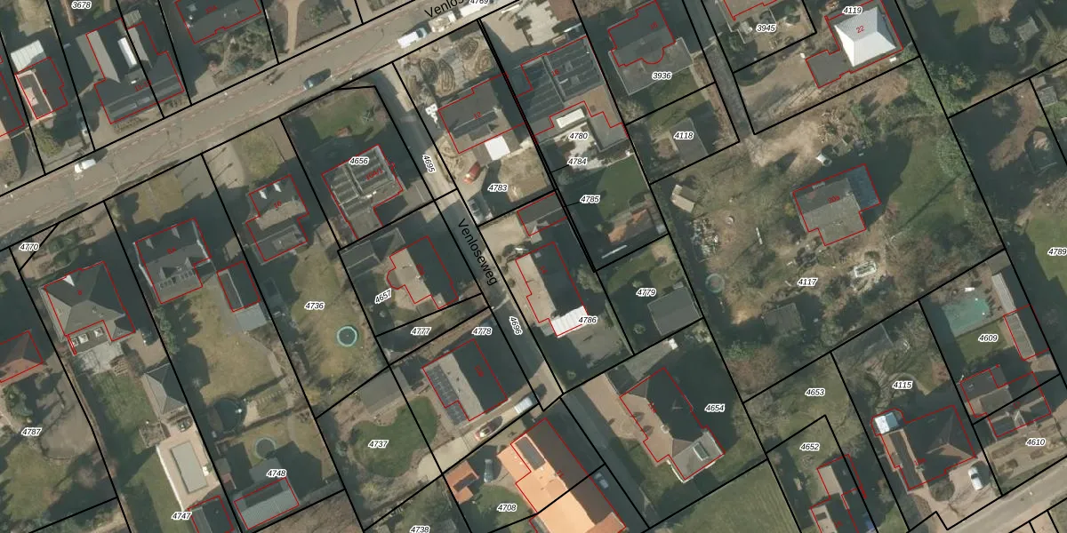 Het perceel waarop Venloseweg 14 staat heeft een oppervlakte van 541 m². Dit is een groot perceel. De perceeloppervlakte wordt geregistreerd door het Kadaster. Gedetailleerde informatie over de maten van dit perceel kunt u vinden in het rapport Kadastrale kaart met maatvoering van Venloseweg 14.