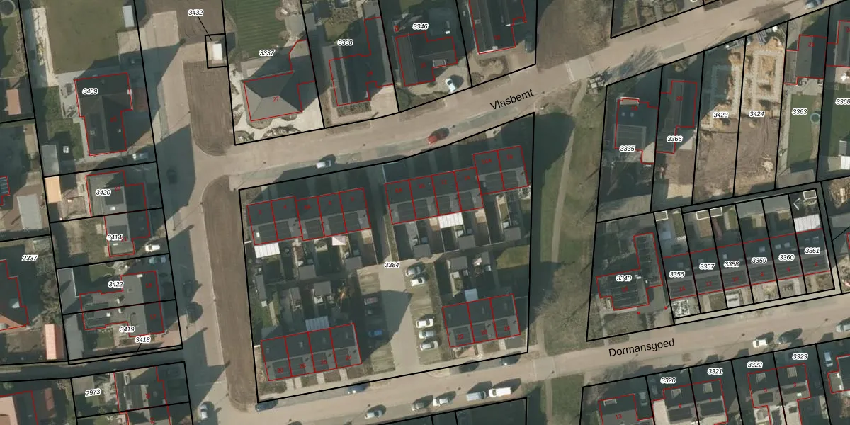 Het perceel waarop Vlasbemt 10 staat heeft een oppervlakte van 3455 m². Dit is een zeer groot perceel. De perceeloppervlakte wordt geregistreerd door het Kadaster. Gedetailleerde informatie over de maten van dit perceel kunt u vinden in het rapport Kadastrale kaart met maatvoering van Vlasbemt 10.