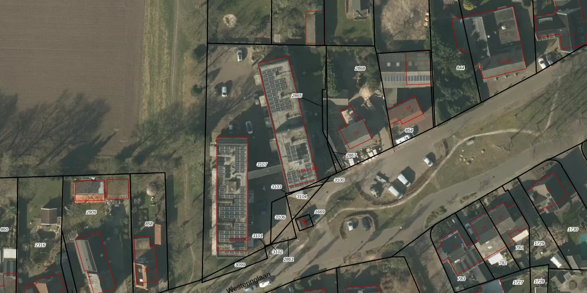 Het perceel waarop Westeringlaan 18-B-2 staat heeft een oppervlakte van 2605 m². Dit is een zeer groot perceel. De perceeloppervlakte wordt geregistreerd door het Kadaster. Gedetailleerde informatie over de maten van dit perceel kunt u vinden in het rapport Kadastrale kaart met maatvoering van Westeringlaan 18-B-2.