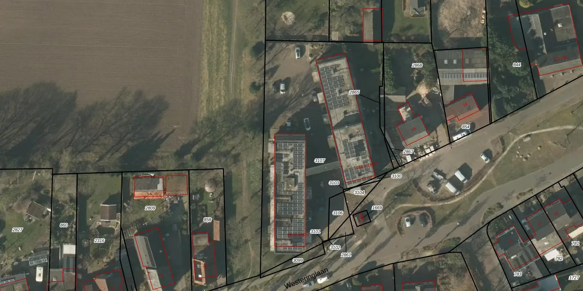 Het perceel waarop Westeringlaan 20-B-4 staat heeft een oppervlakte van 2605 m². Dit is een zeer groot perceel. De perceeloppervlakte wordt geregistreerd door het Kadaster. Gedetailleerde informatie over de maten van dit perceel kunt u vinden in het rapport Kadastrale kaart met maatvoering van Westeringlaan 20-B-4.