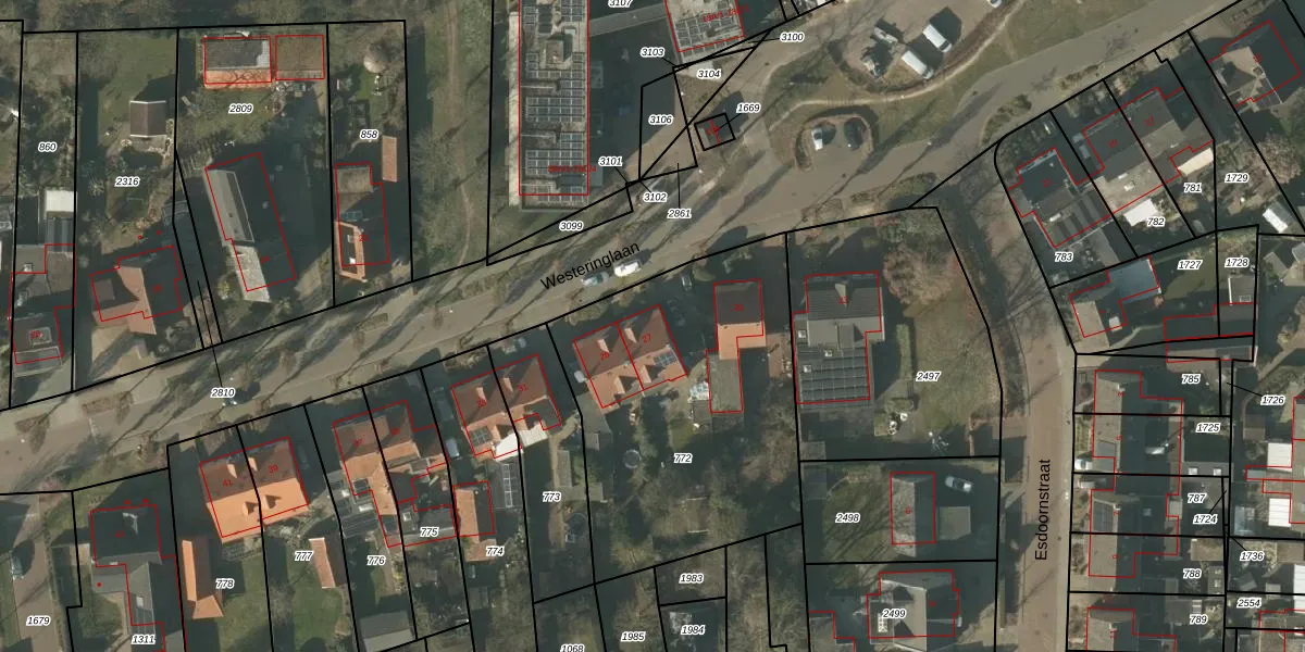 Het perceel waarop Westeringlaan 27 staat heeft een oppervlakte van 1495 m². Dit is een zeer groot perceel. De perceeloppervlakte wordt geregistreerd door het Kadaster. Gedetailleerde informatie over de maten van dit perceel kunt u vinden in het rapport Kadastrale kaart met maatvoering van Westeringlaan 27.