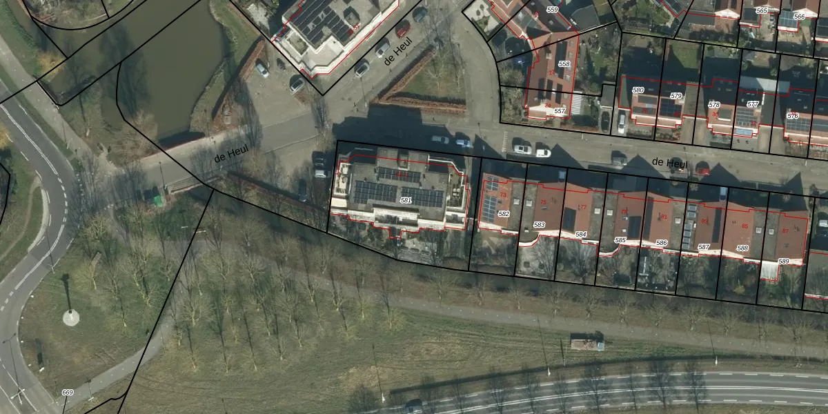 Het perceel waarop de Heul 57 staat heeft een oppervlakte van 914 m². Dit is een groot perceel. De perceeloppervlakte wordt geregistreerd door het Kadaster. Gedetailleerde informatie over de maten van dit perceel kunt u vinden in het rapport Kadastrale kaart met maatvoering van de Heul 57.
