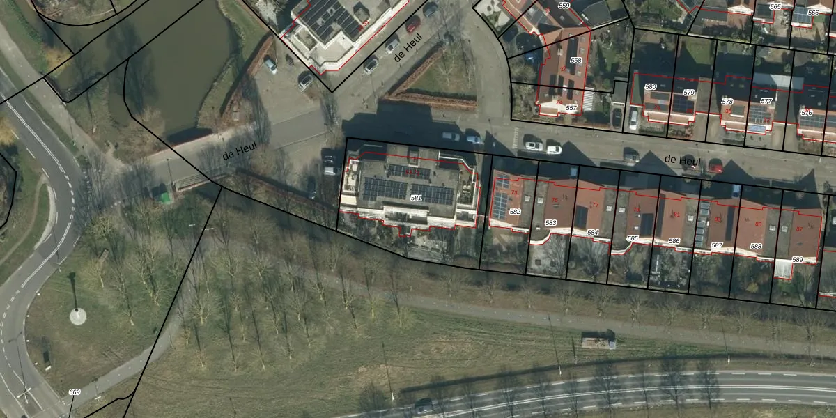 de Heul 63 is gelegen op kadastraal perceel MDM01G581. Deze kadastrale aanduiding is uniek en wordt gebruikt door het Kadaster om eigendomsrechten en andere zakelijke rechten vast te leggen. Het perceel maakt onderdeel uit van de kadastrale gemeente Maasdam.