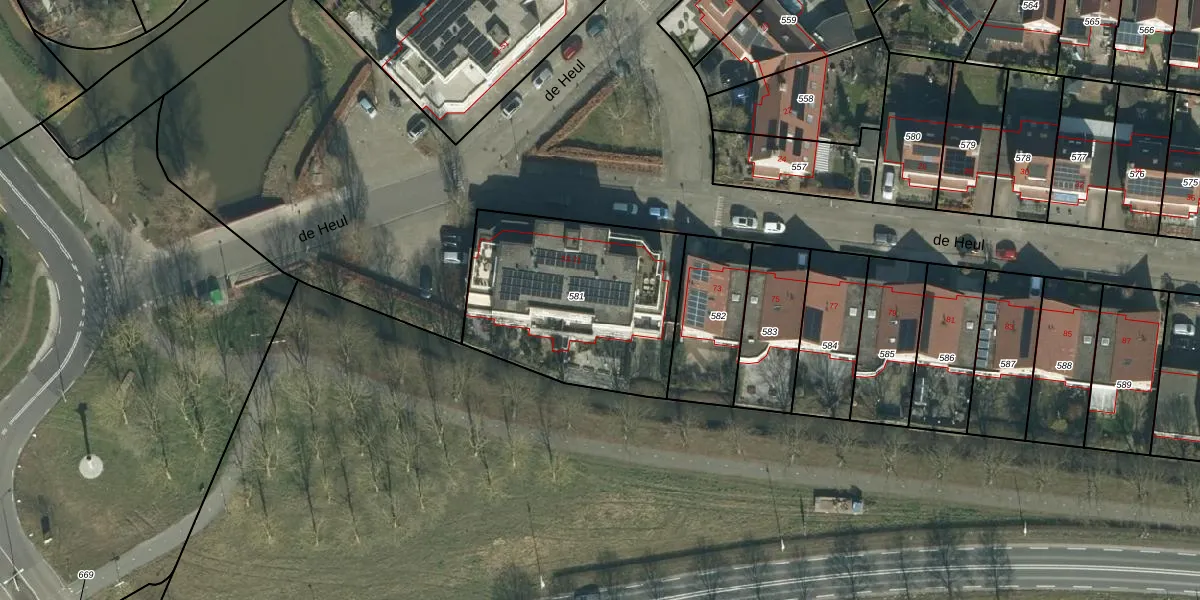 de Heul 69 is gelegen op kadastraal perceel MDM01G581. Deze kadastrale aanduiding is uniek en wordt gebruikt door het Kadaster om eigendomsrechten en andere zakelijke rechten vast te leggen. Het perceel maakt onderdeel uit van de kadastrale gemeente Maasdam.