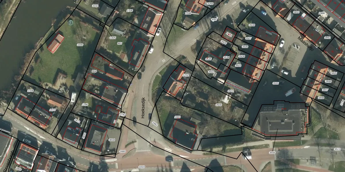 Hoeksedijk 4 is gelegen op kadastraal perceel MDM01A1232. Deze kadastrale aanduiding is uniek en wordt gebruikt door het Kadaster om eigendomsrechten en andere zakelijke rechten vast te leggen. Het perceel maakt onderdeel uit van de kadastrale gemeente Maasdam.