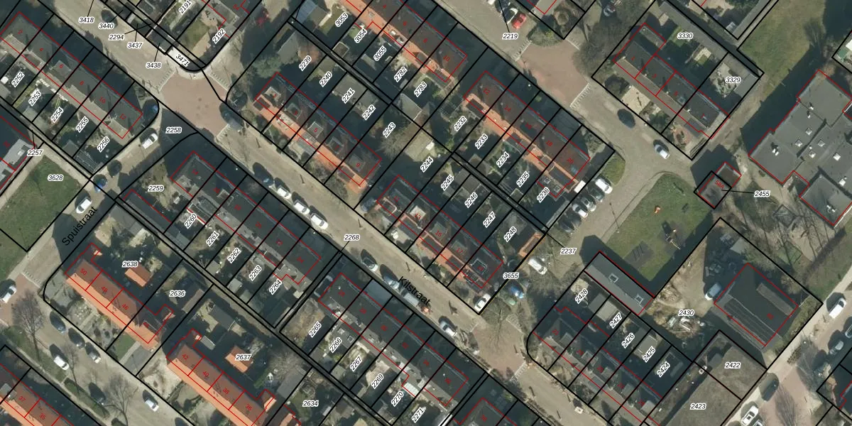 Gebruik de zoekbalk of klik op een perceel voor informatie over de adressen binnen dit perceel.