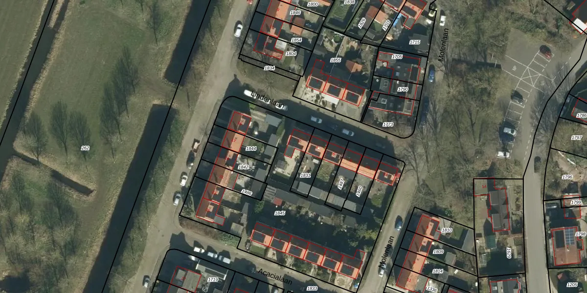 Het perceel waarop Lindenlaan 2 staat heeft een oppervlakte van 2175 m². Dit is een zeer groot perceel. De perceeloppervlakte wordt geregistreerd door het Kadaster. Gedetailleerde informatie over de maten van dit perceel kunt u vinden in het rapport Kadastrale kaart met maatvoering van Lindenlaan 2.