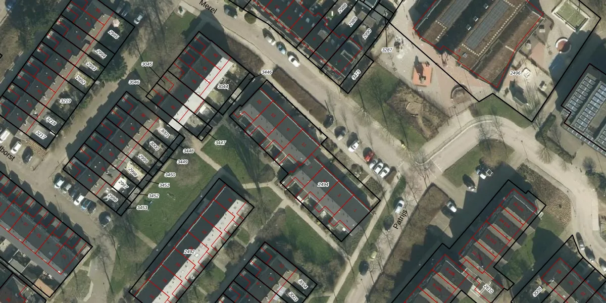 Het perceel waarop Merel 11 staat heeft een oppervlakte van 977 m². Dit is een groot perceel. De perceeloppervlakte wordt geregistreerd door het Kadaster. Gedetailleerde informatie over de maten van dit perceel kunt u vinden in het rapport Kadastrale kaart met maatvoering van Merel 11.