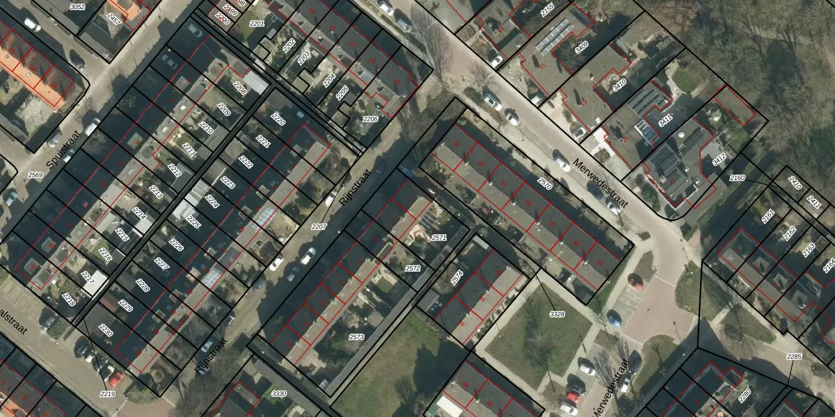 Rijnstraat 1 is gelegen op kadastraal perceel MDM01A2571. Deze kadastrale aanduiding is uniek en wordt gebruikt door het Kadaster om eigendomsrechten en andere zakelijke rechten vast te leggen. Het perceel maakt onderdeel uit van de kadastrale gemeente Maasdam.