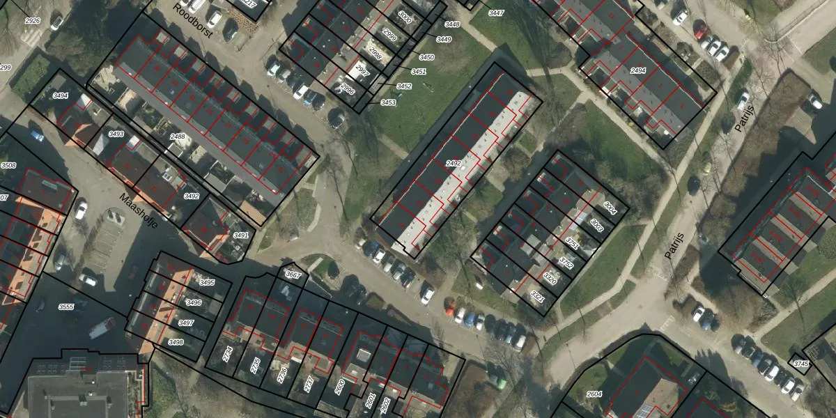 Roodborst 16 is gelegen op kadastraal perceel MDM01A2492. Deze kadastrale aanduiding is uniek en wordt gebruikt door het Kadaster om eigendomsrechten en andere zakelijke rechten vast te leggen. Het perceel maakt onderdeel uit van de kadastrale gemeente Maasdam.