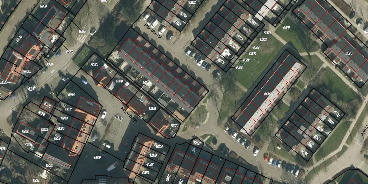Roodborst 23 is gelegen op kadastraal perceel MDM01A2488. Deze kadastrale aanduiding is uniek en wordt gebruikt door het Kadaster om eigendomsrechten en andere zakelijke rechten vast te leggen. Het perceel maakt onderdeel uit van de kadastrale gemeente Maasdam.