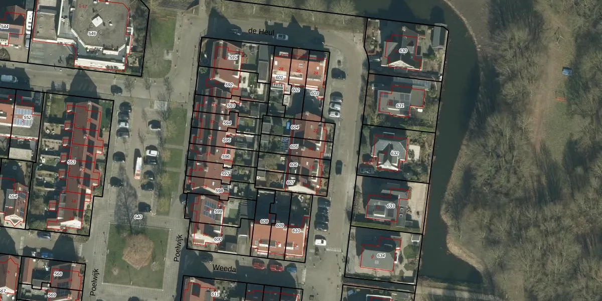 Gebruik de zoekbalk of klik op een perceel voor informatie over de adressen binnen dit perceel.
