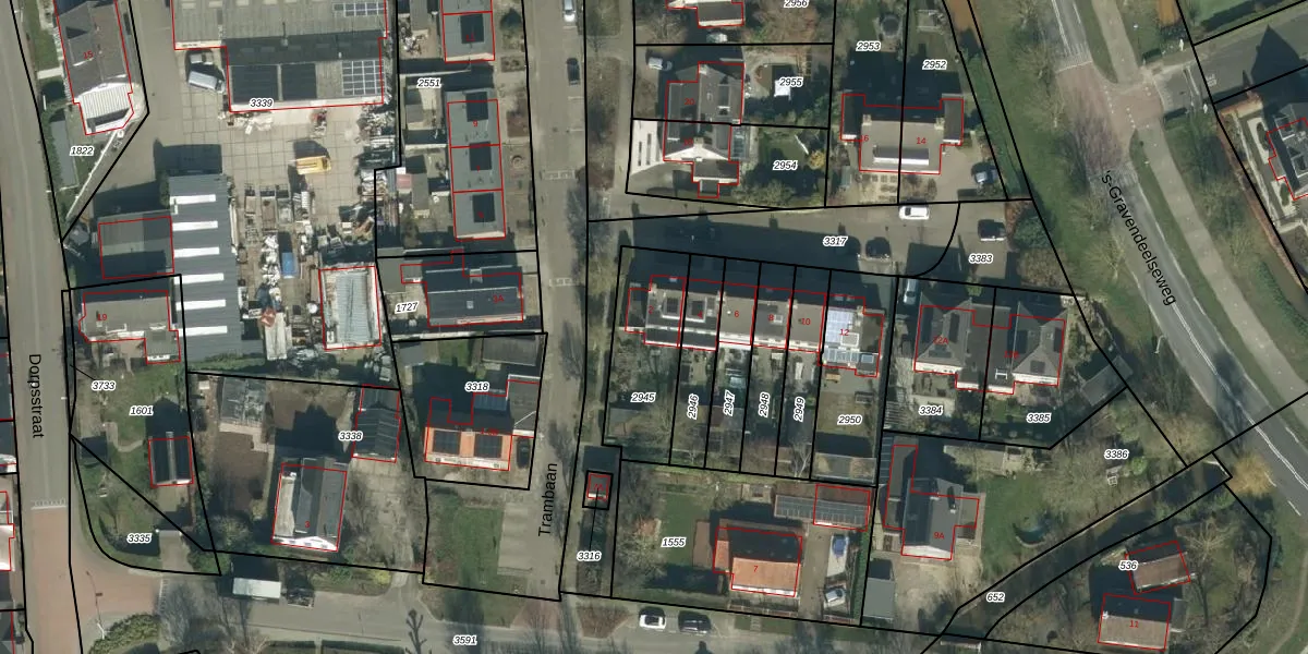 Het perceel waarop Trambaan 2 staat heeft een oppervlakte van 335 m². Dit is een groot perceel. De perceeloppervlakte wordt geregistreerd door het Kadaster. Gedetailleerde informatie over de maten van dit perceel kunt u vinden in het rapport Kadastrale kaart met maatvoering van Trambaan 2.