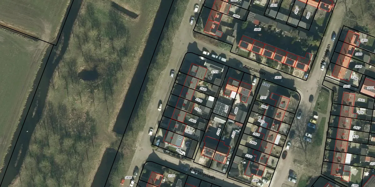 Gebruik de zoekbalk of klik op een perceel voor informatie over de adressen binnen dit perceel.