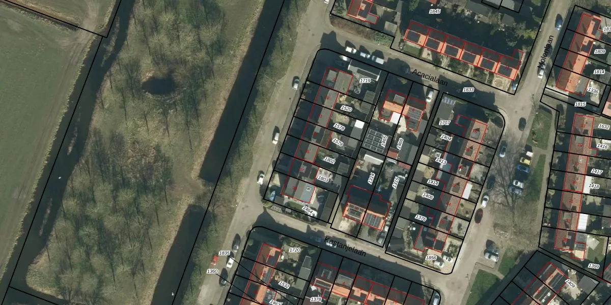Gebruik de zoekbalk of klik op een perceel voor informatie over de adressen binnen dit perceel.