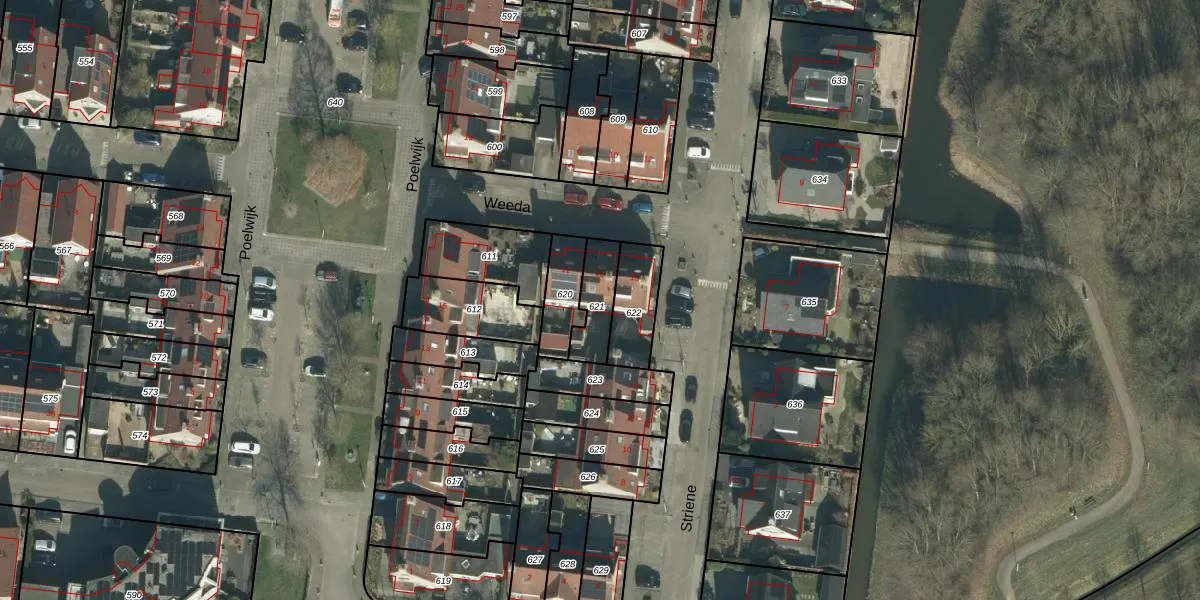Gebruik de zoekbalk of klik op een perceel voor informatie over de adressen binnen dit perceel.