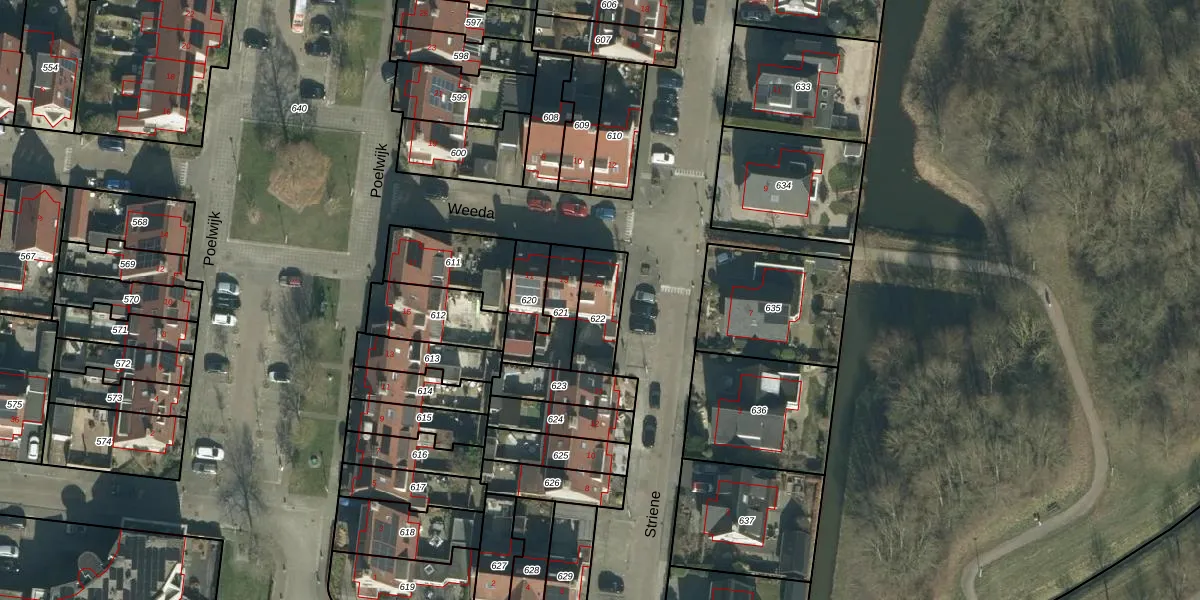 Het perceel waarop Weeda 15 staat heeft een oppervlakte van 147 m². Dit is een middelgroot perceel. De perceeloppervlakte wordt geregistreerd door het Kadaster. Gedetailleerde informatie over de maten van dit perceel kunt u vinden in het rapport Kadastrale kaart met maatvoering van Weeda 15.