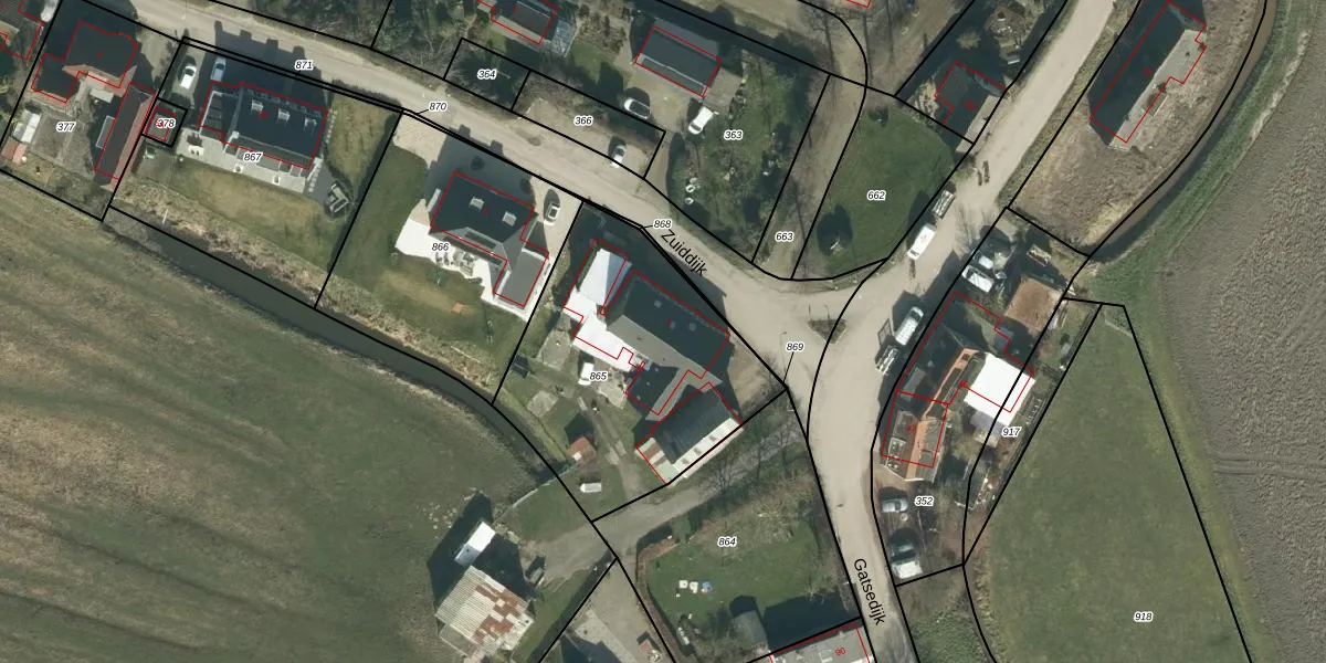 Zuiddijk 1 is gelegen op kadastraal perceel MDM01G865. Deze kadastrale aanduiding is uniek en wordt gebruikt door het Kadaster om eigendomsrechten en andere zakelijke rechten vast te leggen. Het perceel maakt onderdeel uit van de kadastrale gemeente Maasdam.