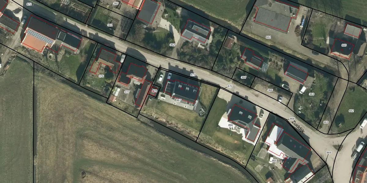 Het perceel waarop Zuiddijk 3-A staat heeft een oppervlakte van 995 m². Dit is een groot perceel. De perceeloppervlakte wordt geregistreerd door het Kadaster. Gedetailleerde informatie over de maten van dit perceel kunt u vinden in het rapport Kadastrale kaart met maatvoering van Zuiddijk 3-A.