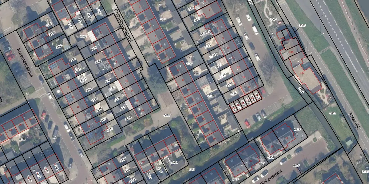 Het perceel waarop Callenburghstraat 19 staat heeft een oppervlakte van 877 m². Dit is een groot perceel. De perceeloppervlakte wordt geregistreerd door het Kadaster. Gedetailleerde informatie over de maten van dit perceel kunt u vinden in het rapport Kadastrale kaart met maatvoering van Callenburghstraat 19.