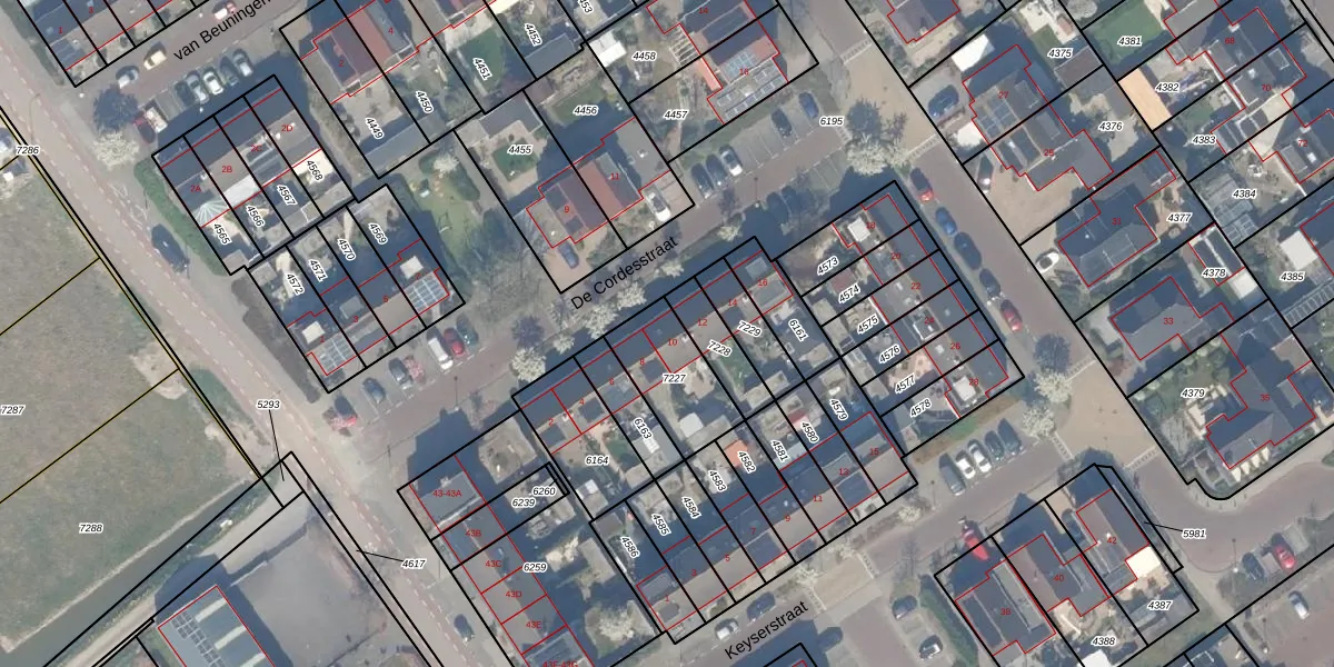 De Cordesstraat 10 is gelegen op kadastraal perceel NWK01F7227. Deze kadastrale aanduiding is uniek en wordt gebruikt door het Kadaster om eigendomsrechten en andere zakelijke rechten vast te leggen. Het perceel maakt onderdeel uit van de kadastrale gemeente Naaldwijk.