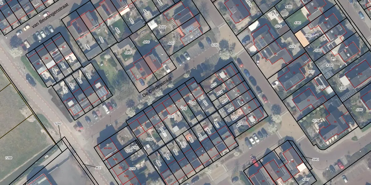De Cordesstraat 14 is gelegen op kadastraal perceel NWK01F7229. Deze kadastrale aanduiding is uniek en wordt gebruikt door het Kadaster om eigendomsrechten en andere zakelijke rechten vast te leggen. Het perceel maakt onderdeel uit van de kadastrale gemeente Naaldwijk.