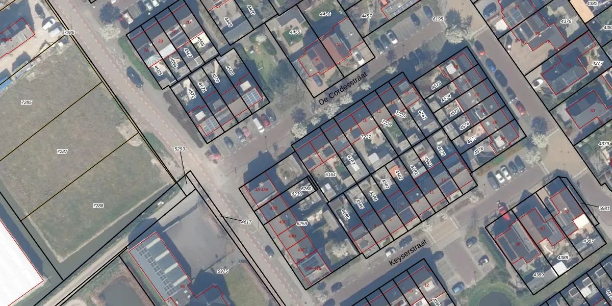 Het perceel waarop De Cordesstraat 2 staat heeft een oppervlakte van 244 m². Dit is een middelgroot perceel. De perceeloppervlakte wordt geregistreerd door het Kadaster. Gedetailleerde informatie over de maten van dit perceel kunt u vinden in het rapport Kadastrale kaart met maatvoering van De Cordesstraat 2.