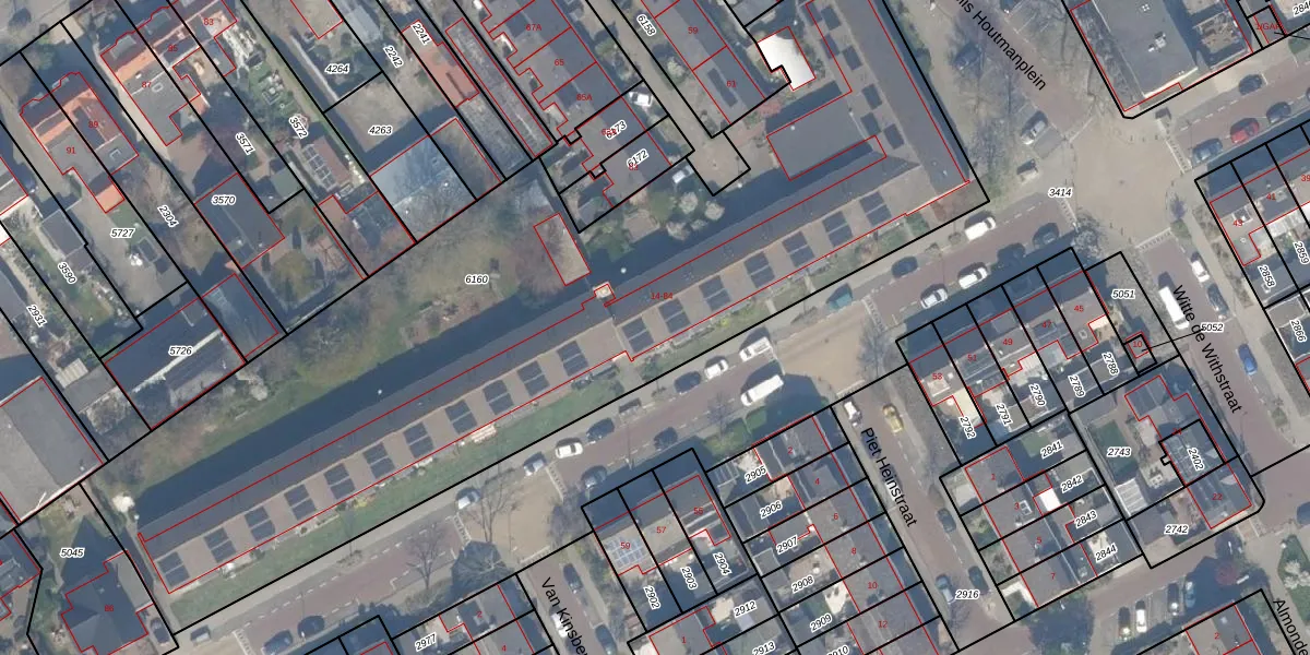 Het perceel waarop De Ruyterstraat 64 staat heeft een oppervlakte van 4678 m². Dit is een zeer groot perceel. De perceeloppervlakte wordt geregistreerd door het Kadaster. Gedetailleerde informatie over de maten van dit perceel kunt u vinden in het rapport Kadastrale kaart met maatvoering van De Ruyterstraat 64.