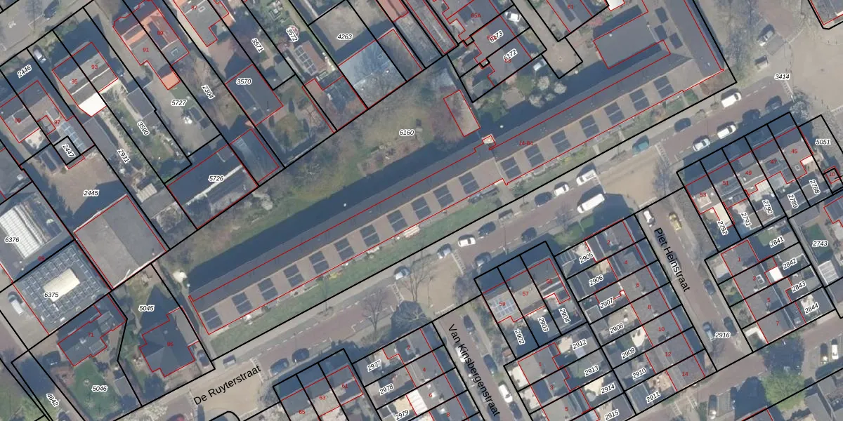Het perceel waarop De Ruyterstraat 70 staat heeft een oppervlakte van 4678 m². Dit is een zeer groot perceel. De perceeloppervlakte wordt geregistreerd door het Kadaster. Gedetailleerde informatie over de maten van dit perceel kunt u vinden in het rapport Kadastrale kaart met maatvoering van De Ruyterstraat 70.