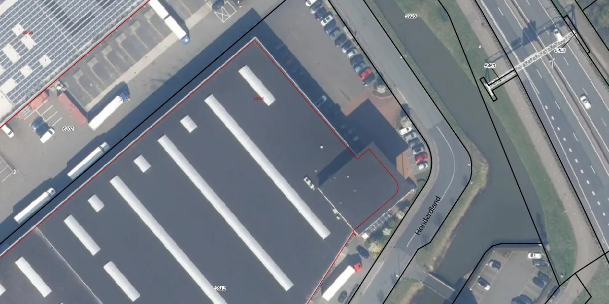 Het perceel waarop Honderdland 32 staat heeft een oppervlakte van 1,8 ha. Dit is een zeer groot perceel. De perceeloppervlakte wordt geregistreerd door het Kadaster. Gedetailleerde informatie over de maten van dit perceel kunt u vinden in het rapport Kadastrale kaart met maatvoering van Honderdland 32.