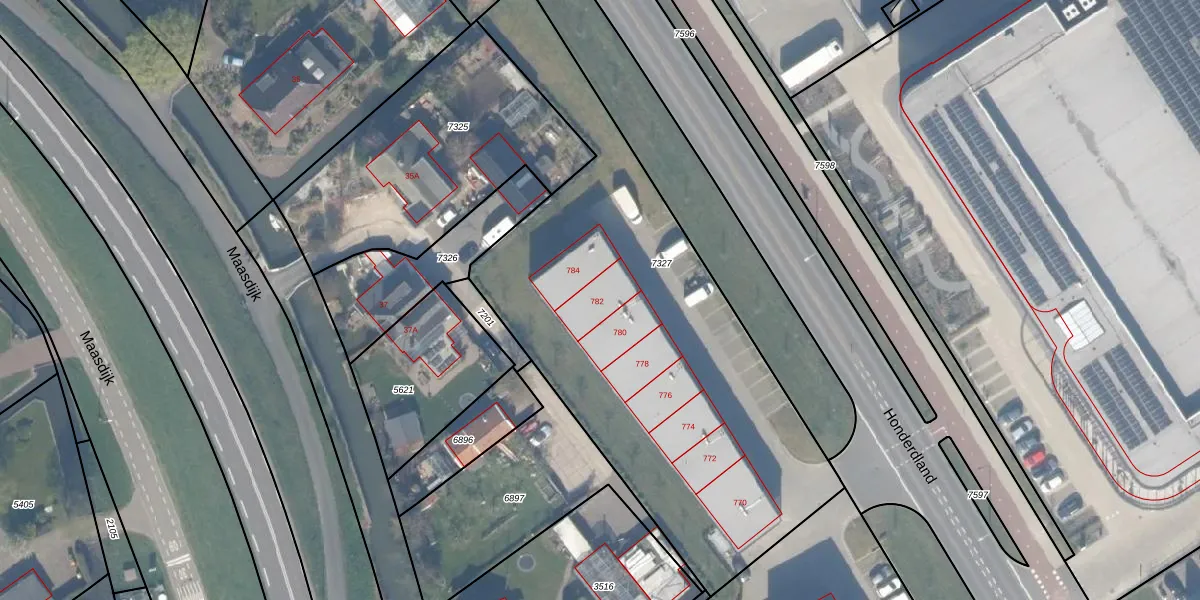 Het adres Honderdland 782 bevindt zich in de plaats Maasdijk, in de gemeente Maasdijk en de provincie Zuid-Holland. Het perceel waarop het verblijfsobject staat is 2384 m² groot. De oppervlakte van het adres is 117 m², wat zich rond het Nederlandse gemiddelde van 119 m² bevindt. Het object is klein ten opzichte van de andere adressen in de straat. Het grootste verblijfsobject is 5,6 ha groot en het kleinste is 7 m². Honderdland 782 ligt in een gebouw uit het jaar 2023. Daarmee behoort het tot de groep panden van na 1984, die we als relatief nieuw bestempelen. Veel andere gebouwen in de straat zijn ouder dan dit pand. Het oudste pand komt uit het jaar 1933 en het nieuwste uit 2025. De volgende gebruiksdoelen zijn geregistreerd voor dit adres: 'industriefunctie'.