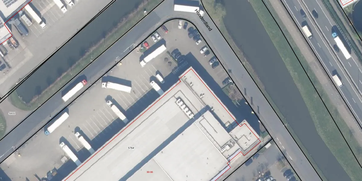 Honderdland 90 is gelegen op kadastraal perceel NWK01F5764. Deze kadastrale aanduiding is uniek en wordt gebruikt door het Kadaster om eigendomsrechten en andere zakelijke rechten vast te leggen. Het perceel maakt onderdeel uit van de kadastrale gemeente Naaldwijk.
