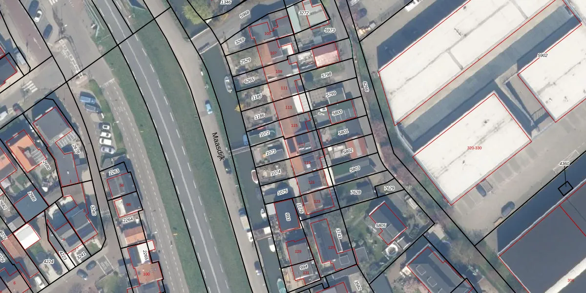 Het perceel waarop Maasdijk 117 staat heeft een oppervlakte van 166 m². Dit is een middelgroot perceel. De perceeloppervlakte wordt geregistreerd door het Kadaster. Gedetailleerde informatie over de maten van dit perceel kunt u vinden in het rapport Kadastrale kaart met maatvoering van Maasdijk 117.