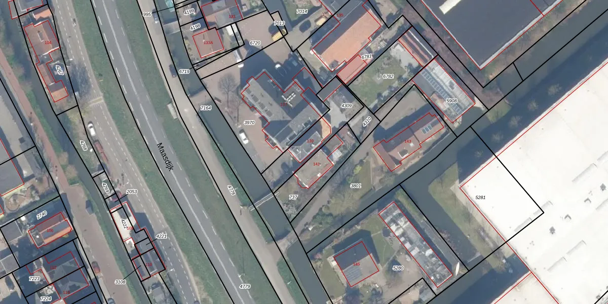 Het perceel waarop Maasdijk 139 staat heeft een oppervlakte van 361 m². Dit is een groot perceel. De perceeloppervlakte wordt geregistreerd door het Kadaster. Gedetailleerde informatie over de maten van dit perceel kunt u vinden in het rapport Kadastrale kaart met maatvoering van Maasdijk 139.
