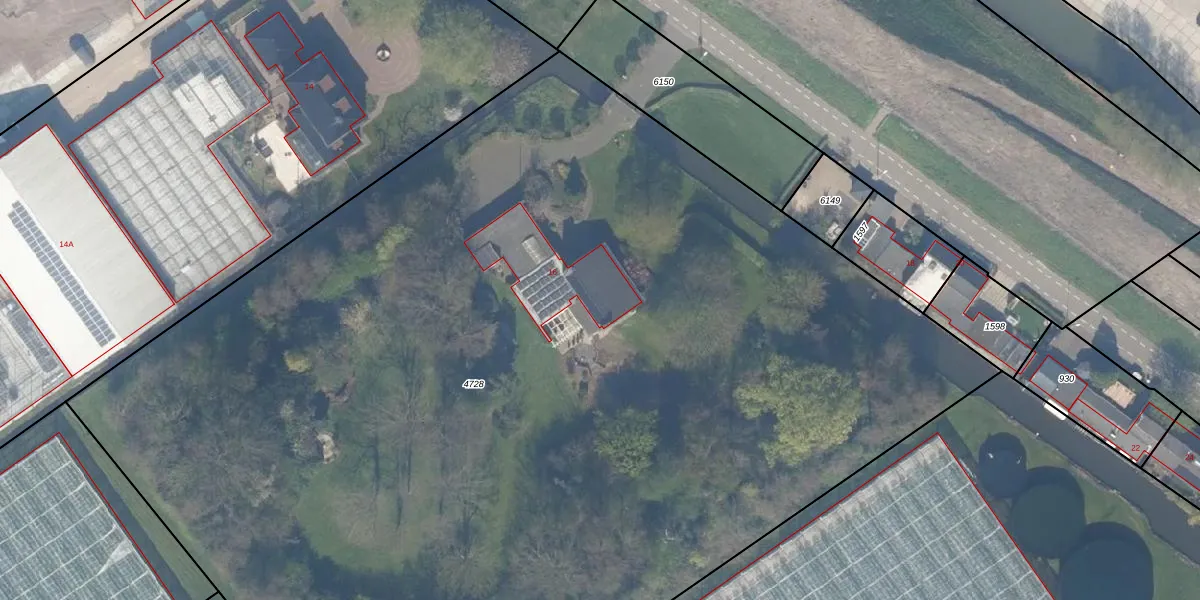 Het perceel waarop Maasdijk 16 staat heeft een oppervlakte van 9871 m². Dit is een zeer groot perceel. De perceeloppervlakte wordt geregistreerd door het Kadaster. Gedetailleerde informatie over de maten van dit perceel kunt u vinden in het rapport Kadastrale kaart met maatvoering van Maasdijk 16.