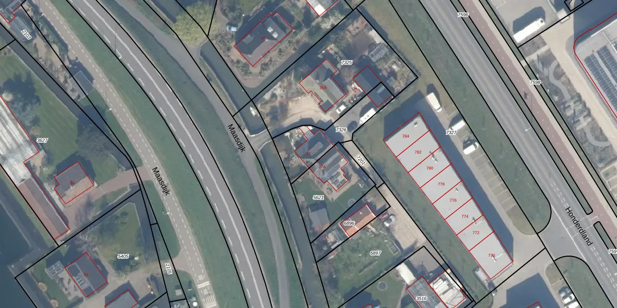 Maasdijk 37 is gelegen op kadastraal perceel NWK01F7326. Deze kadastrale aanduiding is uniek en wordt gebruikt door het Kadaster om eigendomsrechten en andere zakelijke rechten vast te leggen. Het perceel maakt onderdeel uit van de kadastrale gemeente Naaldwijk.