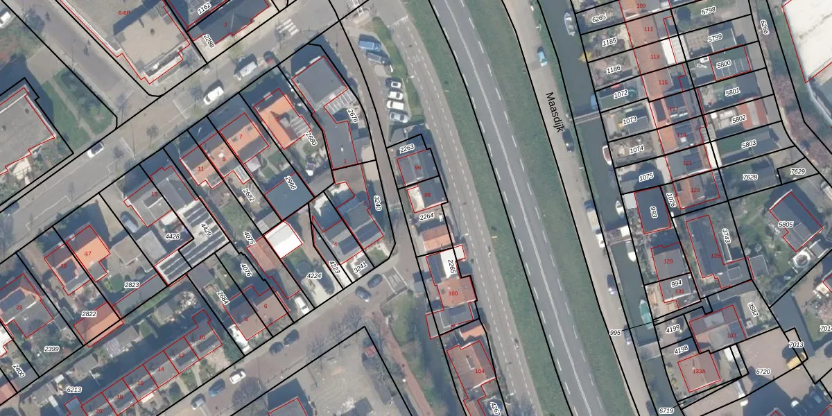 Het perceel waarop Maasdijk 98 staat heeft een oppervlakte van 165 m². Dit is een middelgroot perceel. De perceeloppervlakte wordt geregistreerd door het Kadaster. Gedetailleerde informatie over de maten van dit perceel kunt u vinden in het rapport Kadastrale kaart met maatvoering van Maasdijk 98.