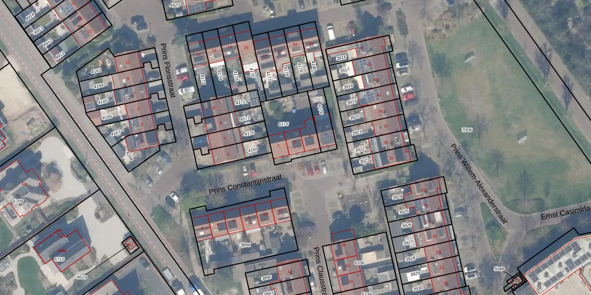 Het perceel waarop Prins Constantijnstraat 3 staat heeft een oppervlakte van 352 m². Dit is een groot perceel. De perceeloppervlakte wordt geregistreerd door het Kadaster. Gedetailleerde informatie over de maten van dit perceel kunt u vinden in het rapport Kadastrale kaart met maatvoering van Prins Constantijnstraat 3.