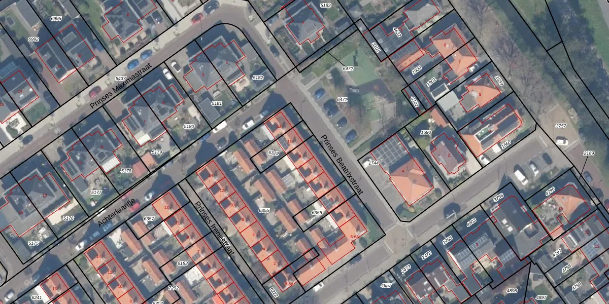Het perceel waarop Prinses Beatrixstraat 9 staat heeft een oppervlakte van 1869 m². Dit is een zeer groot perceel. De perceeloppervlakte wordt geregistreerd door het Kadaster. Gedetailleerde informatie over de maten van dit perceel kunt u vinden in het rapport Kadastrale kaart met maatvoering van Prinses Beatrixstraat 9.