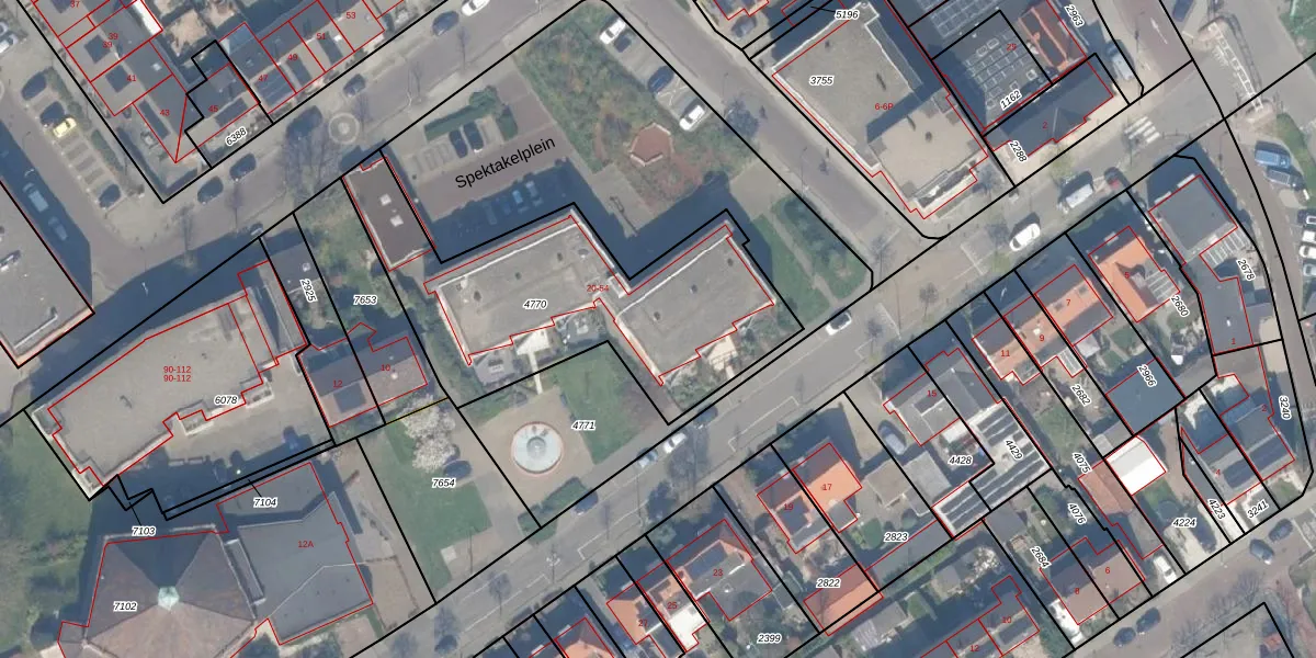 Spektakelplein 36 is gelegen op kadastraal perceel NWK01F4770. Deze kadastrale aanduiding is uniek en wordt gebruikt door het Kadaster om eigendomsrechten en andere zakelijke rechten vast te leggen. Het perceel maakt onderdeel uit van de kadastrale gemeente Naaldwijk.